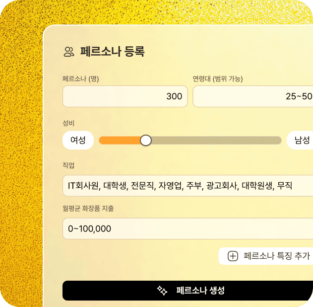 실제 패널 리서치와 동일한 방식으로 응답을 얻을 수 있는 AI 솔루션입니다.
